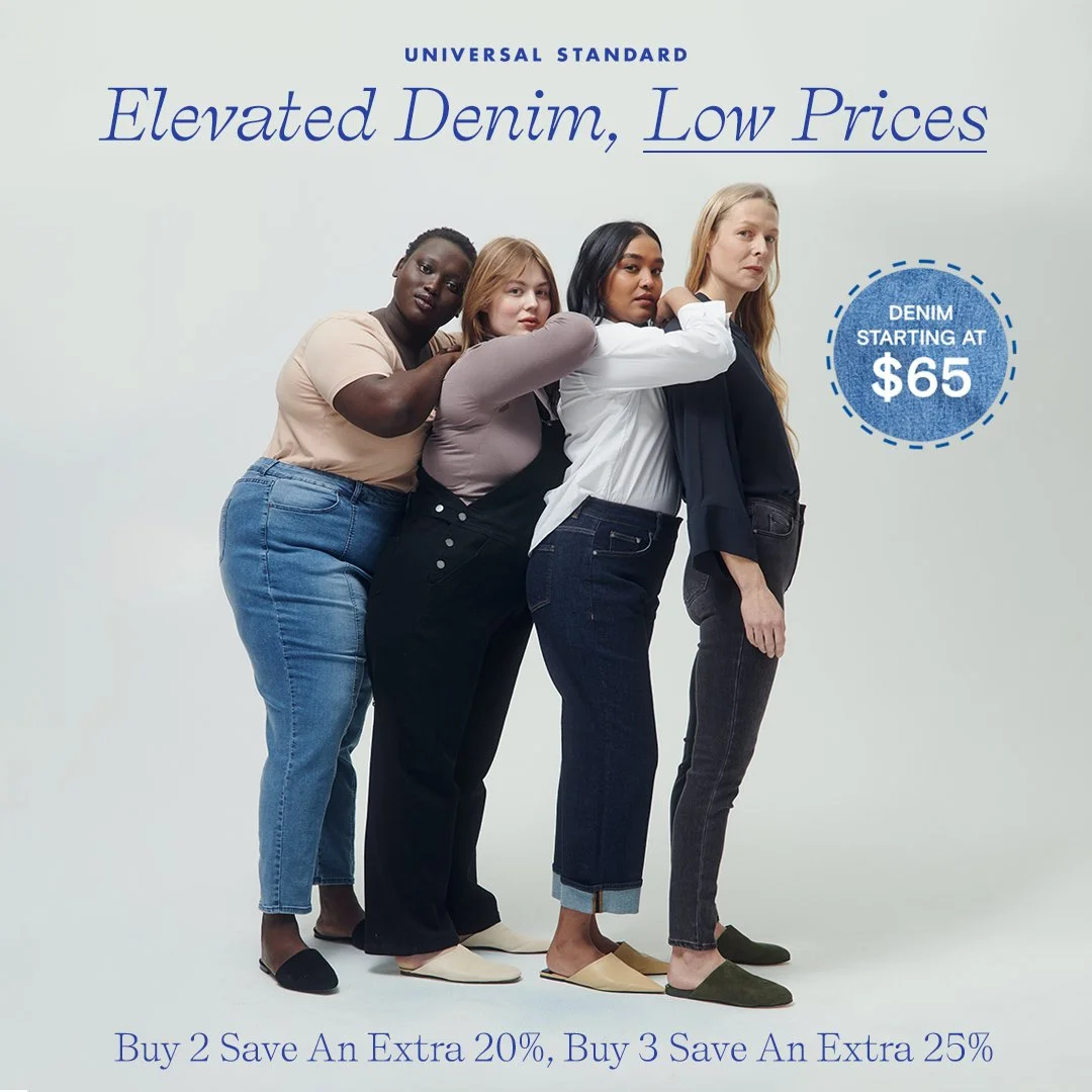 Denim Sale Campaign: Designed ads to promote Universal Standard’s denim sale, showcasing a variety of styles while highlighting key product details through curated photography and strategic callouts. Focused on maintaining the brand’s voice and a sense of elegance across all visuals, balancing informative content with clean, elevated design to support both storytelling and sales.